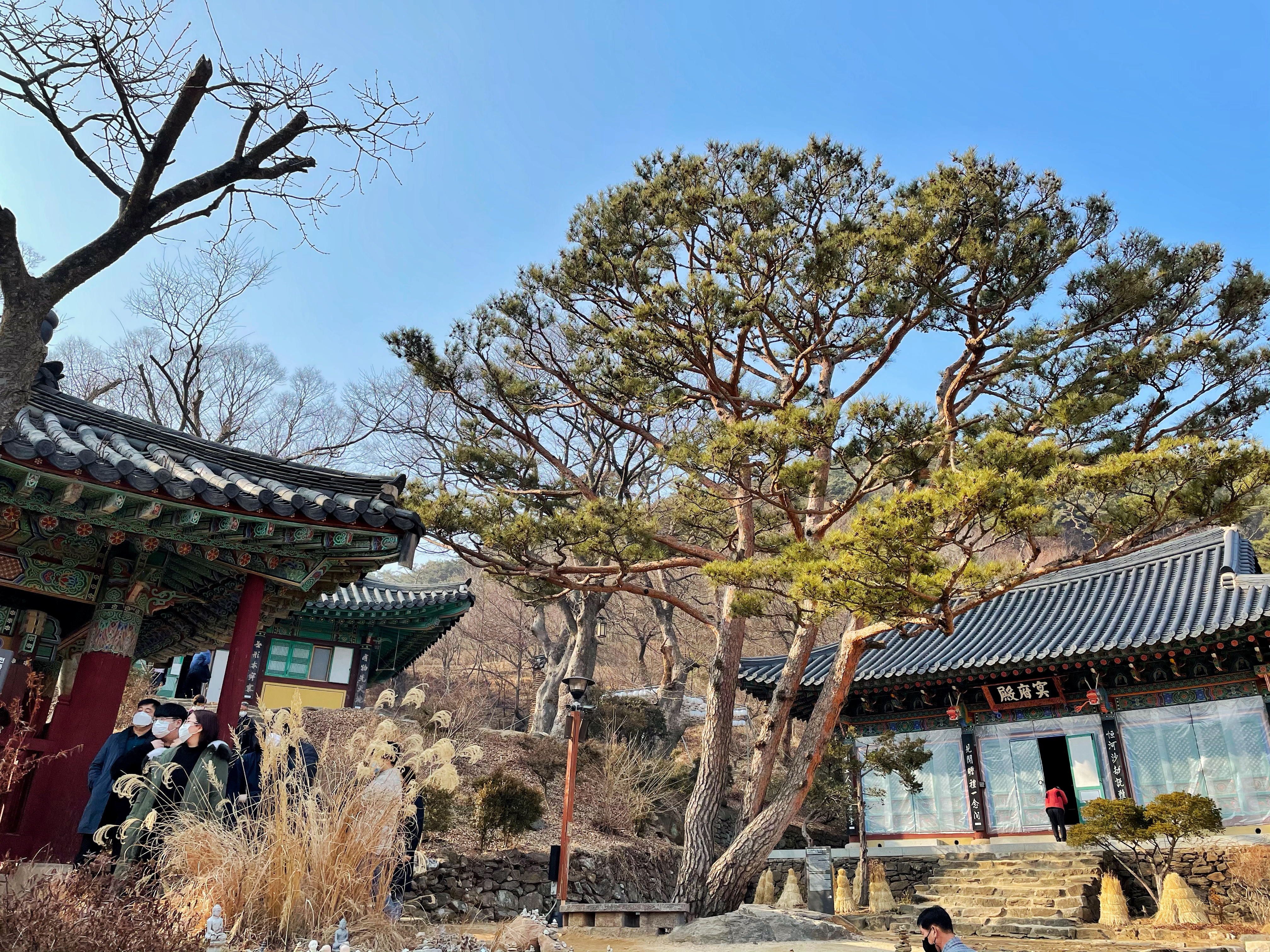절과 소나무가 어우러진 풍경이 정말 좋습니다. 많은 분들이 반려견들과 산책하듯 많이들 오셨습니다.