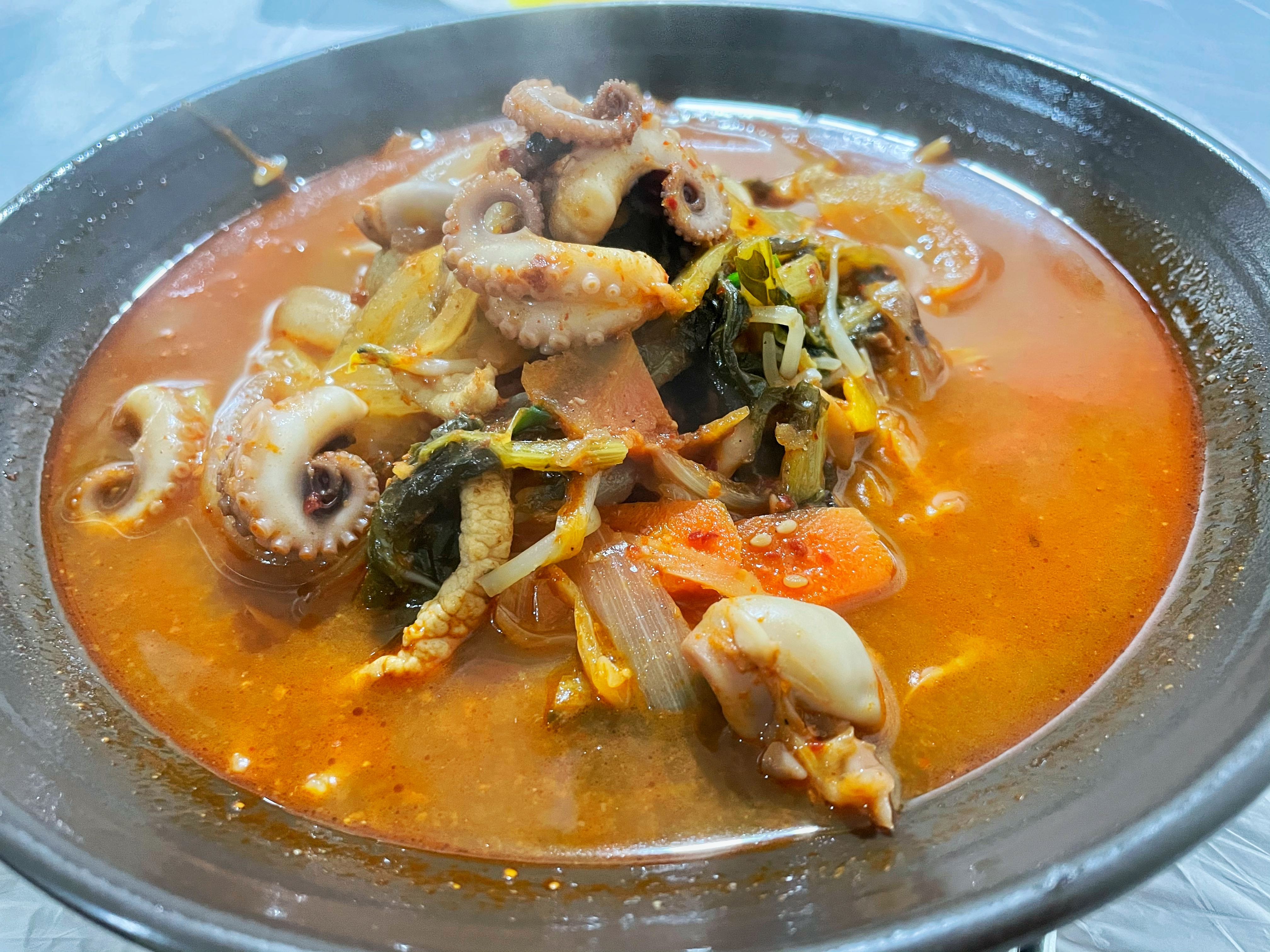 쭈꾸미짬뽕을 주문했는데 가격은 9,000원입니다. 쭈꾸미 비빔밥도 같이 팔고 있었는데 2인분부터 주문이 가능해서 저희는 짬뽕만 시켜 먹었습니다. 짬뽕에서 불맛도 나고 쭈꾸미도 질기지 않고 맛이 좋았습니다! 최근에 먹은 짬뽕 중 최고였습니다.
