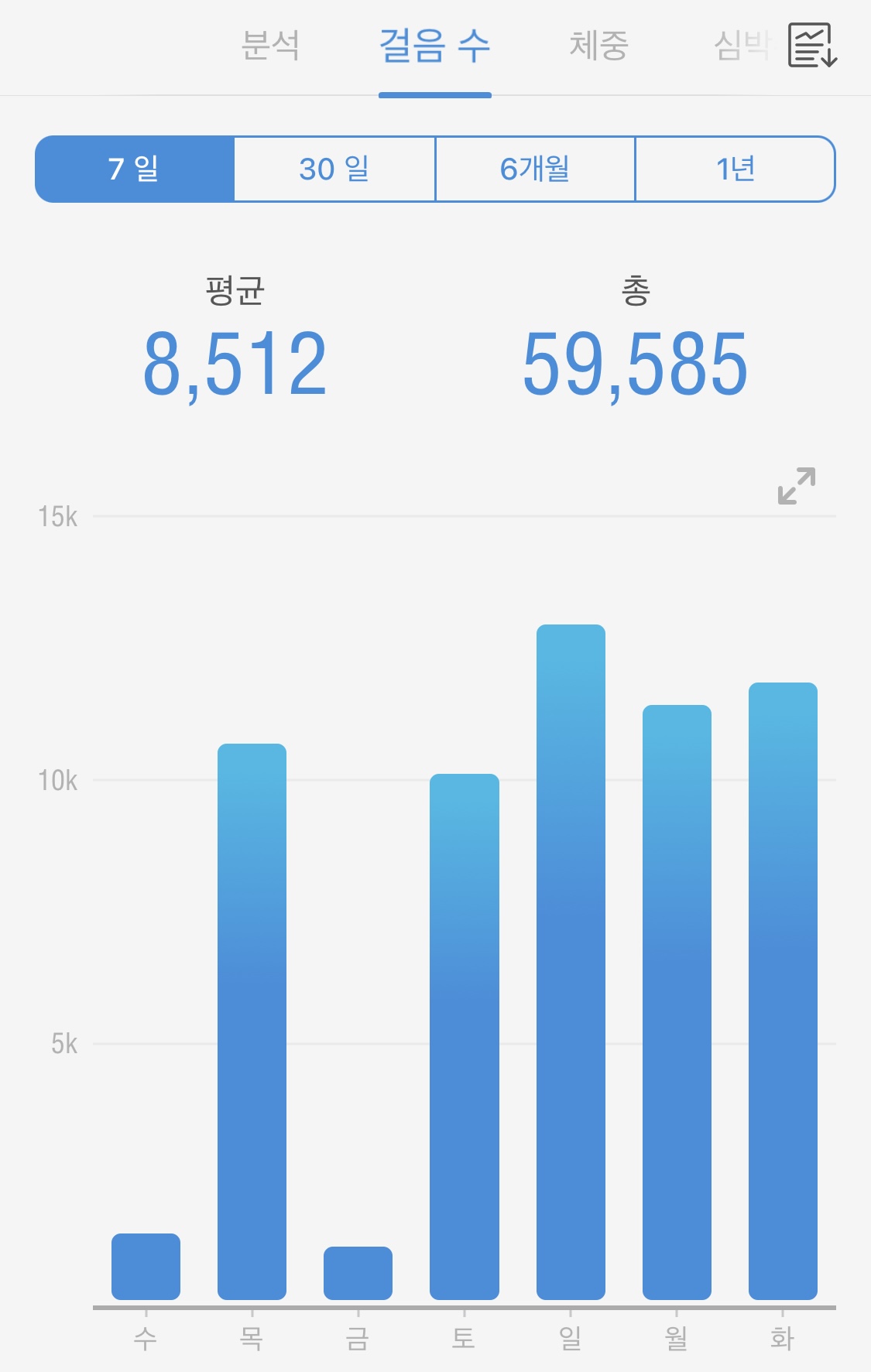 다리가 만보에 적응을 하고 지금 보다 체력이 더 좋아지면 걸음 수와 속도를 늘려볼 생각입니다.