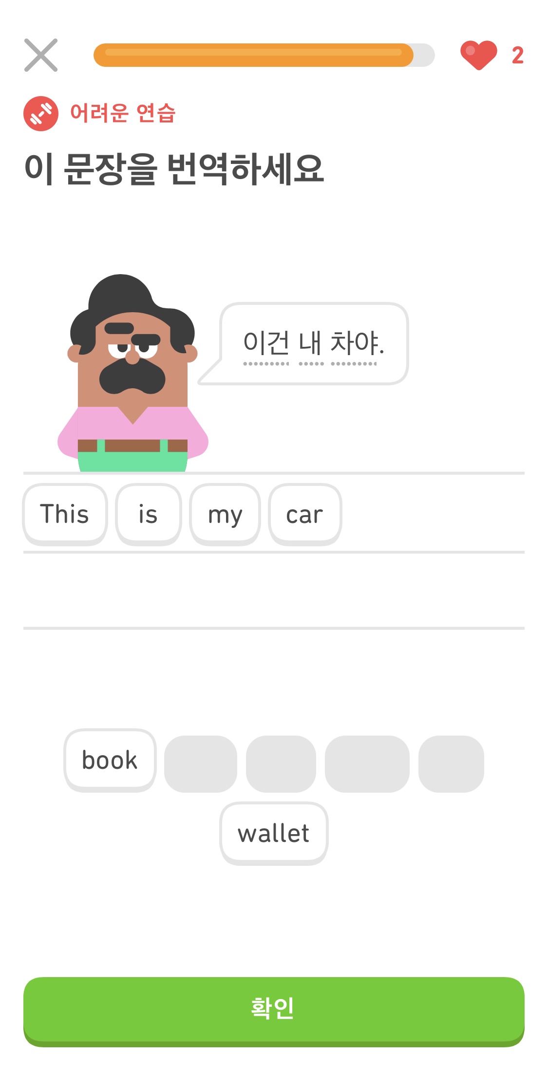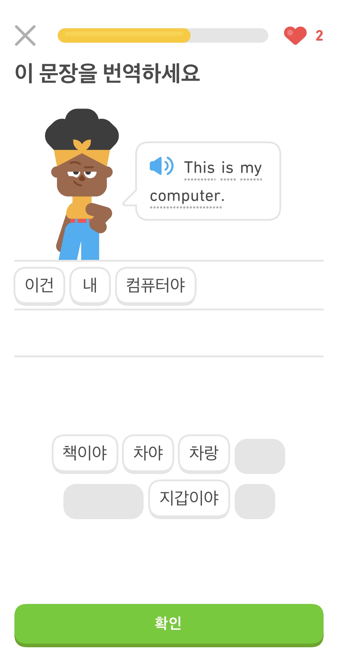 다만 듀오링고에서 영어 외에 다른 언어를 배울때에는 한국어 대신 영어를 사용하여 배우게 되어 좀 아쉽습니다.