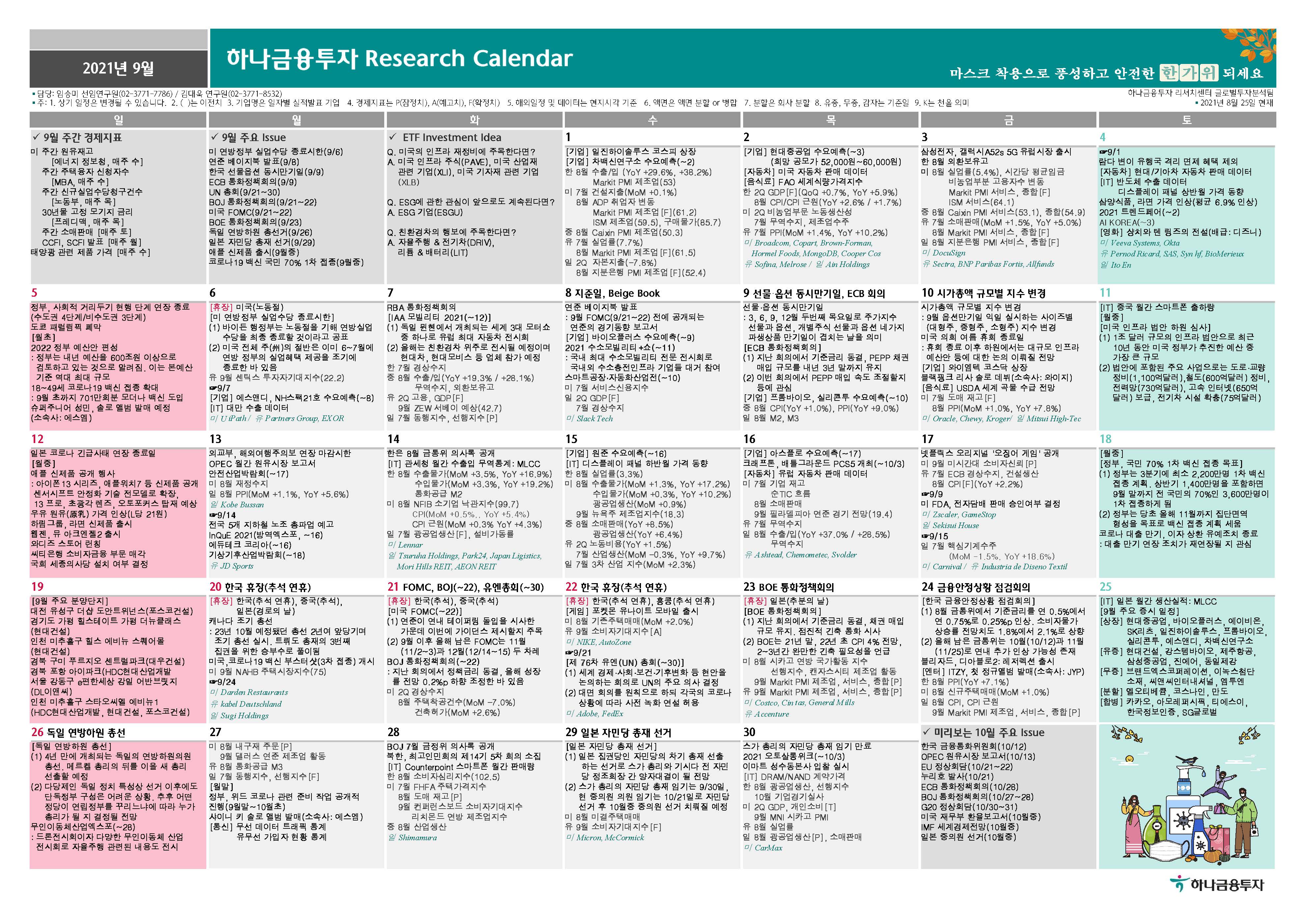 9월 주요 이슈와 증시 전망을 정리해 놓은 캘린더입니다.